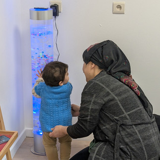 De ouders met kleine kinderen (0-3 jaar) is de groep waar het allemaal mee begon. Sinds oktober 2024 verzamelen we op vrijdag van 11u tot 12u voor een ouder-kind activiteit, in combinatie met een kop thee en een koekje. Vanuit Fedasil kwam de vraag om in te zetten op verbinding: zowel tussen ouder en kind, als tussen ouders onderling. Ze hadden in het centrum opgemerkt dat moeders met jonge kinderen vaak alleen op hun kamer zaten, en weinig connectie hadden met andere ouders. Vanuit Toerako installeerden we traumasensitieve laagdrempelige sessies, waar ouders even konden vertragen, en er ruimte en tijd was voor quality time en eventuele vragen over de ontwikkeling van hun kind. En dat lukte aardig. Wij waren heel erg blij om te horen dat vorige zomer, wanneer wij eens niet konden komen, een paar mama’s dan maar zelf een sessie in de gang hadden georganiseerd!